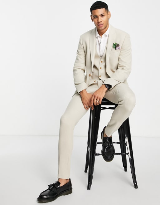 ASOS DESIGN Wedding – Stenfärgad kostym av borstad twill i supersmal passform