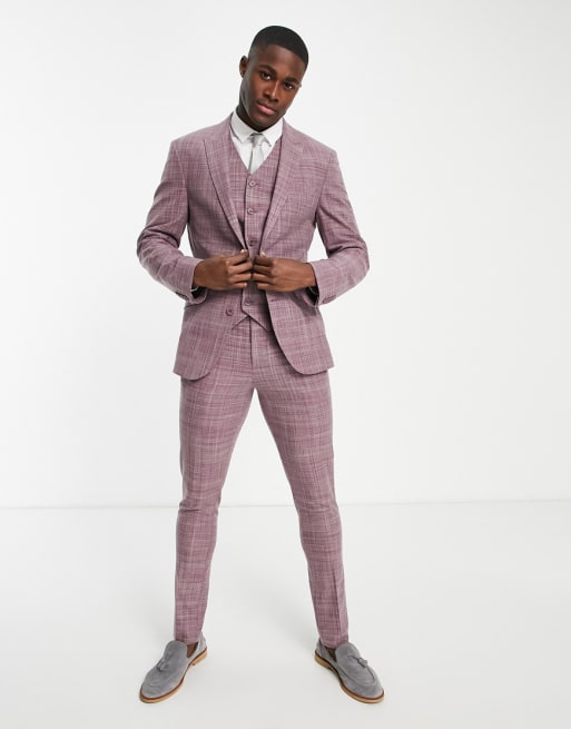 ASOS DESIGN Wedding – Vinröd kostym med crosshatch-mönster och skinny passform