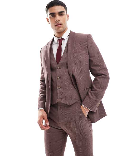 ASOS DESIGN Wedding – Vinröd skinny kostymjacka med mikrotextur