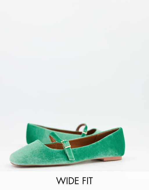ASOS DESIGN – Wide Fit – Lolly – Gröna Mary Jane-ballerinaskor i sammet