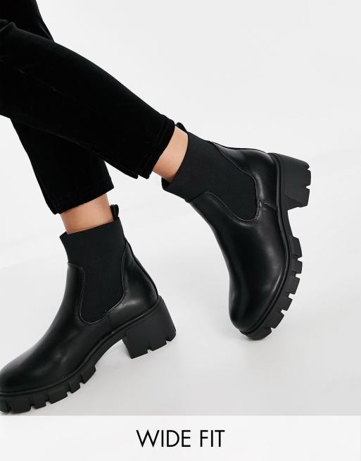 ASOS DESIGN – Wide Fit – Robbie – Svarta, grova chelseaboots med bred passform
