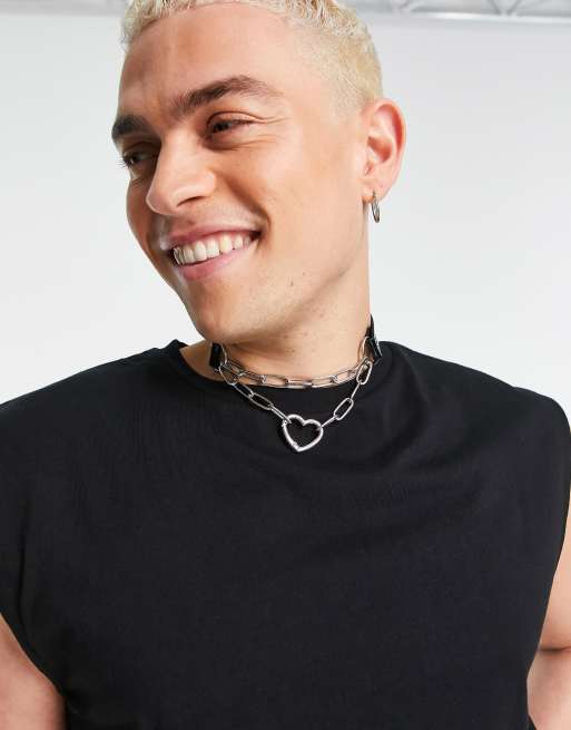 ASOS DESIGN – Y2K – Chokerhalsband i läderimitation med metallhjärta