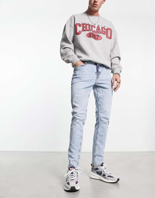 ASOS DESIGN – Y2K – Ljusblå smala jeans med tvättad finish