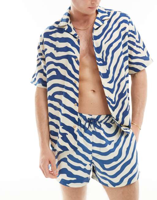 ASOS DESIGN – Zebramönstrad, avslappnad skjorta med platt krage och boxig passform, del av set