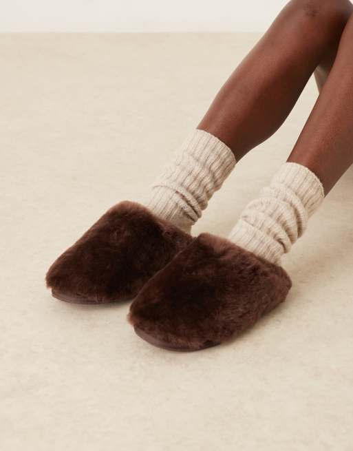 ASOS DESIGN – Zori – Premium – Chokladbruna mules i fårskinn