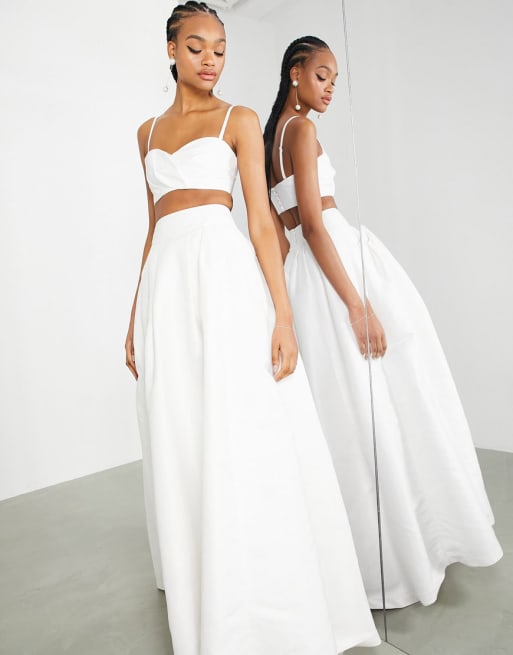 ASOS EDITION – Benvitt bröllopsset med bralette med plisserad byst och vid maxikjol