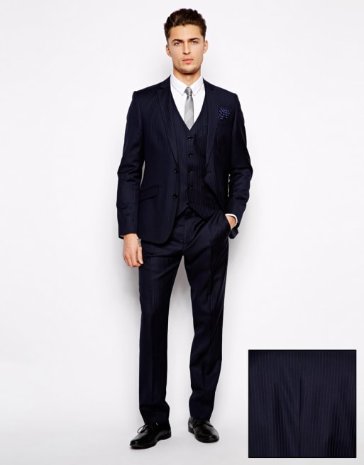 ASOS – Kritstrecksrandig kostym med smal passform i 100 % ull