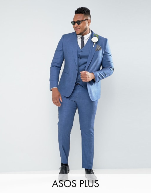 ASOS PLUS – Blå bröllopskostym med smal passform