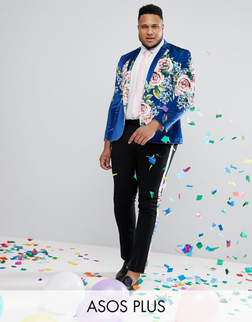 ASOS PLUS – Tealfärgad sammetskostym med blomstermönster och supersmal passform