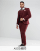ASOS PLUS – Vinröd fiskbensmönstrad bröllopskostym med supersmal passform