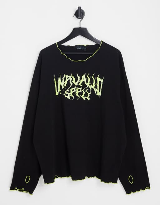 ASOS Unrvlld Spply – Svart t-shirt i oversize med extra långa ärmar, tumhål och grafiskt tryck