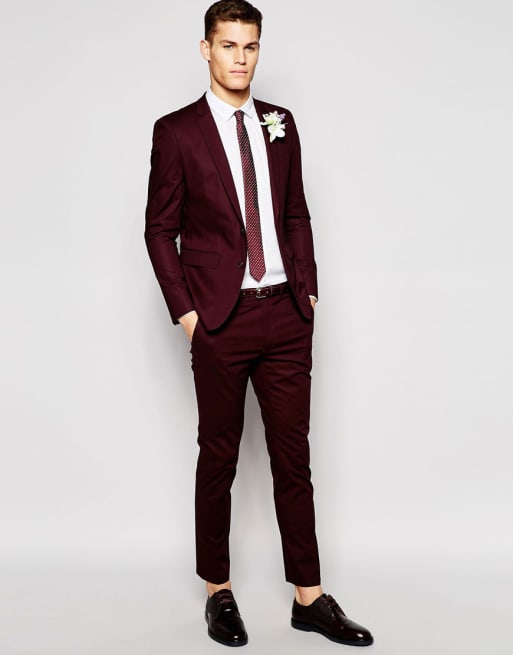 ASOS – Vinröd bröllopskostym i poplin med smal passform