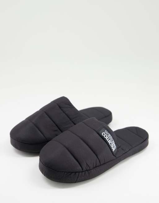 ASOS – Weekend Collective – Svarta vadderade tofflor med täckt tå