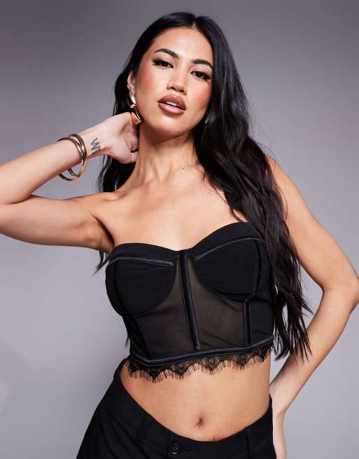 ASOS x THE SOURCED COLLECTION – Svart korsett i mesh, del av set
