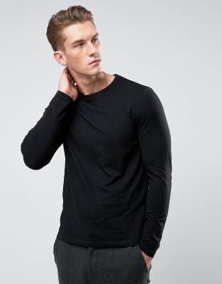 ASOS DESIGN – Svart långärmad t-shirt med rund halsringning