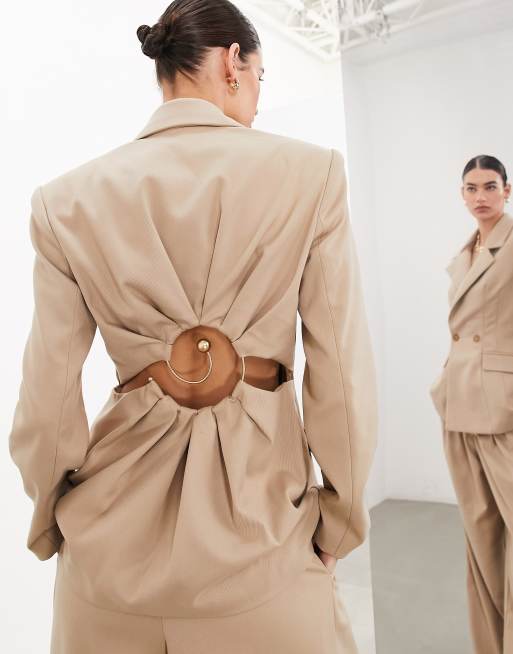 ASOS EDITION – Beige kavaj med indragen spiraldesign baktill