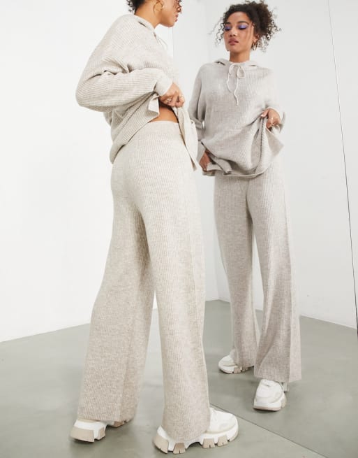 ASOS EDITION – Beige ribbstickat set med oversize huvtröja och byxor