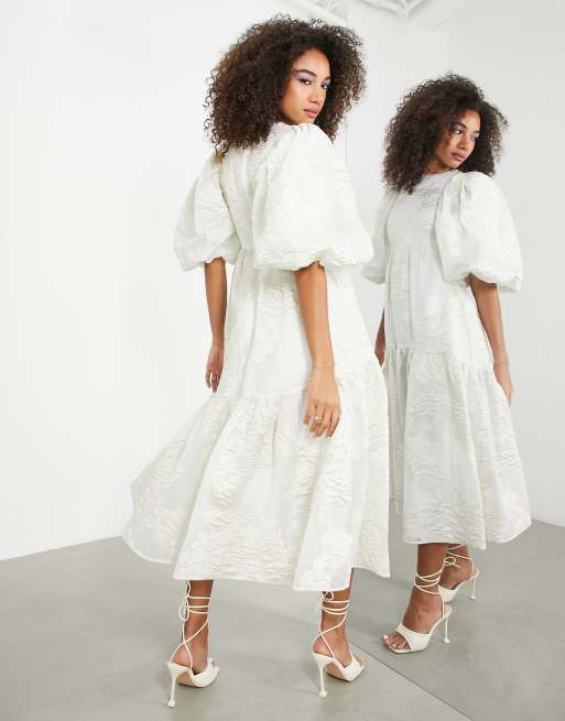 ASOS EDITION – Benvit metallisk midiklänning i blommig jacquard med paneler