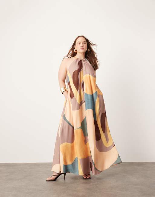 ASOS EDITION Curve – Abstrakt mönstrad maxiklänning i trapetsstil