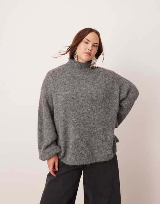 ASOS EDITION – Curve – Gråmelerad, stickad tröja i oversize med hög krage
