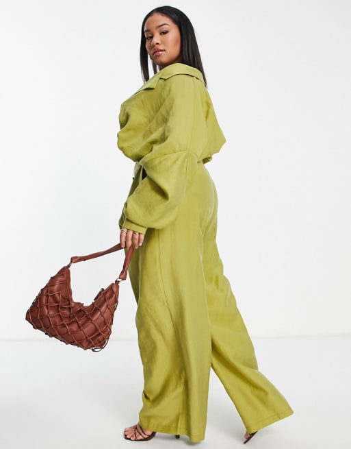 ASOS EDITION Curve – Limegrönt set med tencel-topp och vida byxor