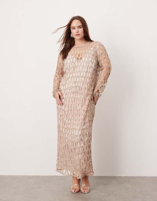 ASOS EDITION Curve – Silverfärgad, utsmyckad midaxiklänning med utskurna cirklar