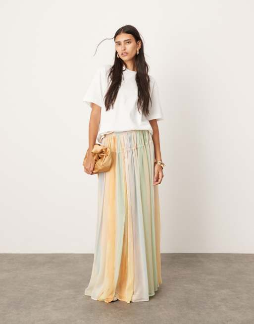 ASOS EDITION – Flerfärgad panelsydd maxikjol med knytning i midjan och akvarellmönster