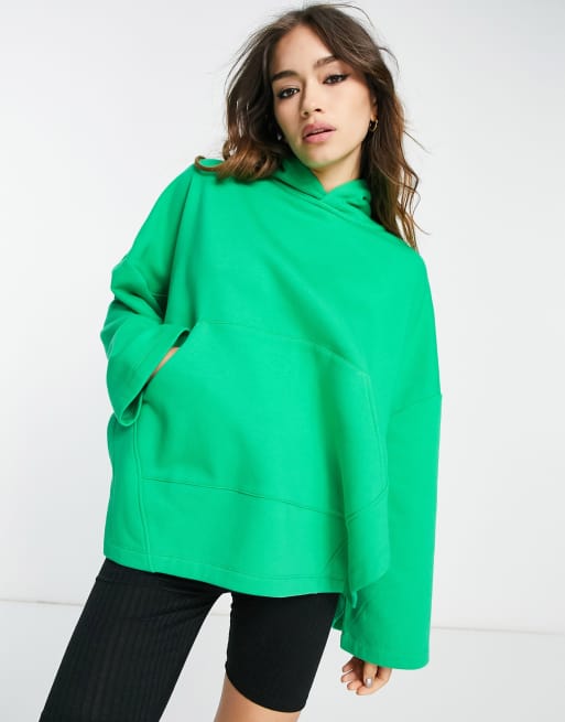 ASOS EDITION – Grön sweatshirt i oversize med huva och kluvna sidor