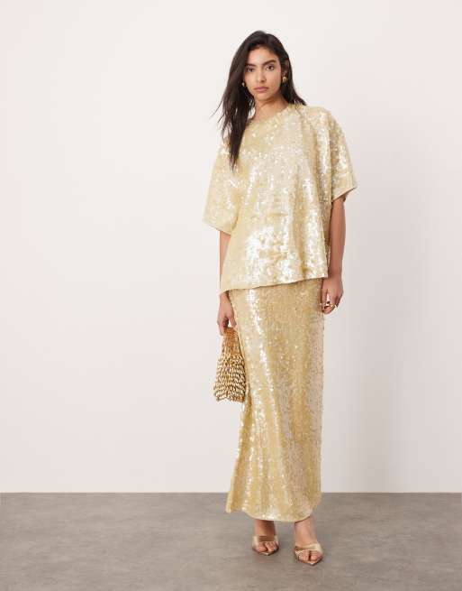 ASOS EDITION – Krämvit, paljettklädd, stickad t-shirt i oversize, del av set