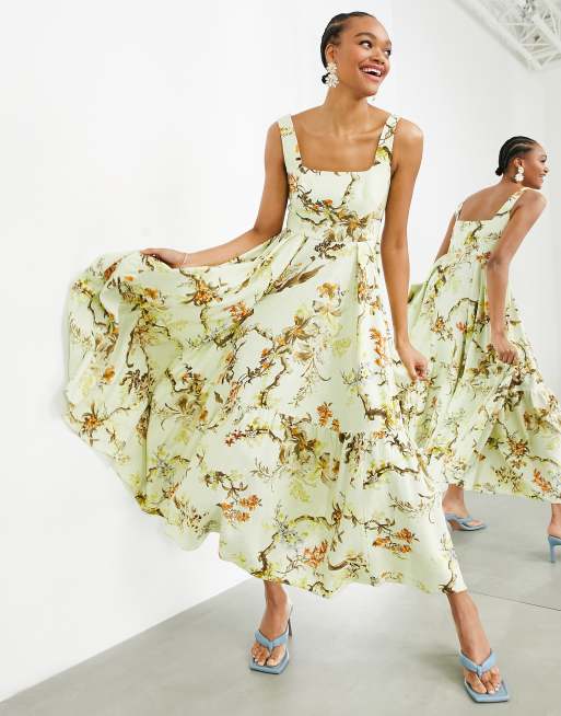ASOS EDITION – Naturmönstrad ärmlös midiklänning i panelsydd design med fyrkantig halsringning