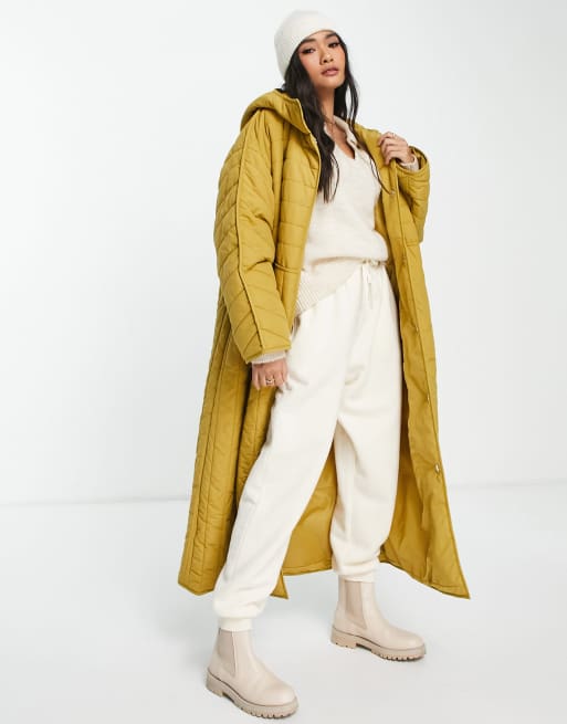 ASOS EDITION – Ockragul quiltad jacka i lång modell med huva