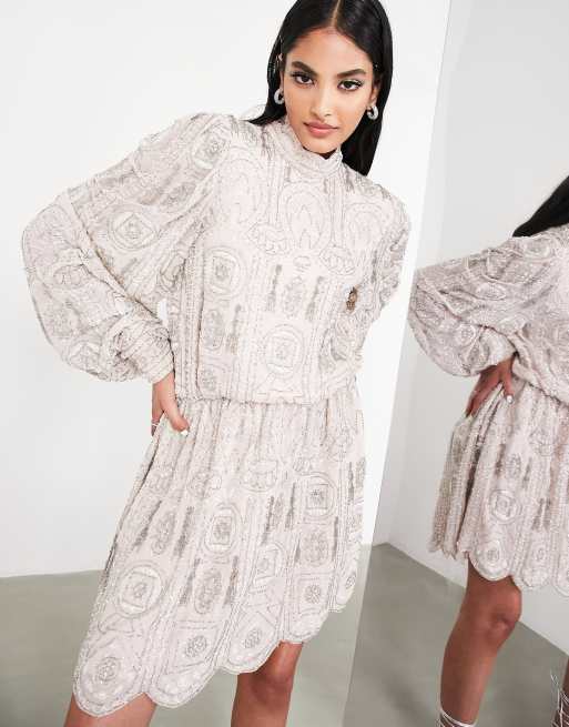 ASOS EDITION – Puderrosa, kort skaterklänning med utsmyckning