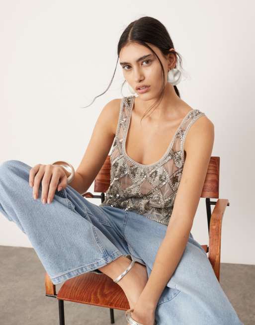 ASOS EDITION – Silverfärgat, utsmyckat linne med geometriskt mönster
