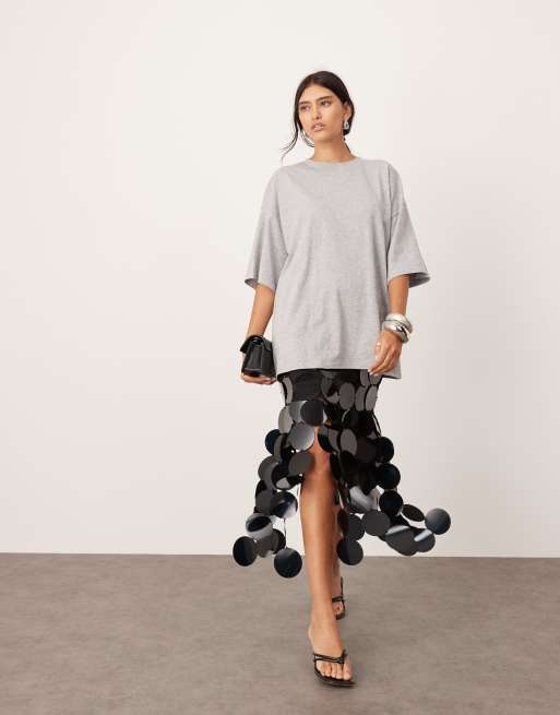 ASOS EDITION – Svart, utsmyckad midikjol med stora palettfransar