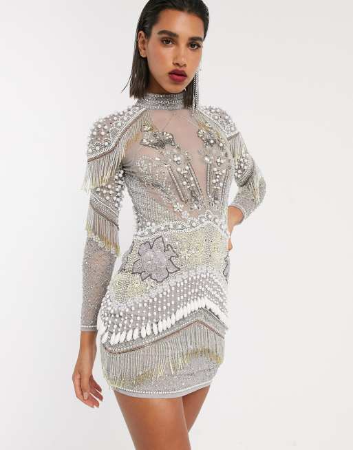 ASOS EDITION – Utsmyckad klänning i skir mesh