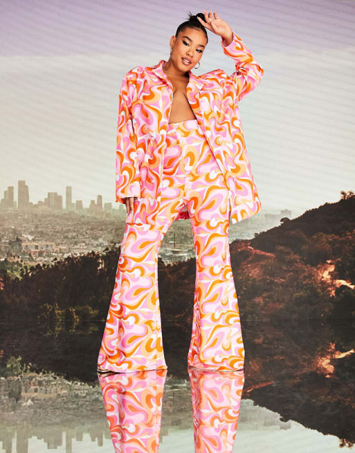ASOS DESIGN x MILLIE – Virvelmönstrat set med utsvängda byxor