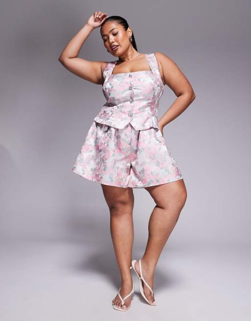 ASOS LUXE Curve – Jacquardvävd playsuit med utsmyckade knappar