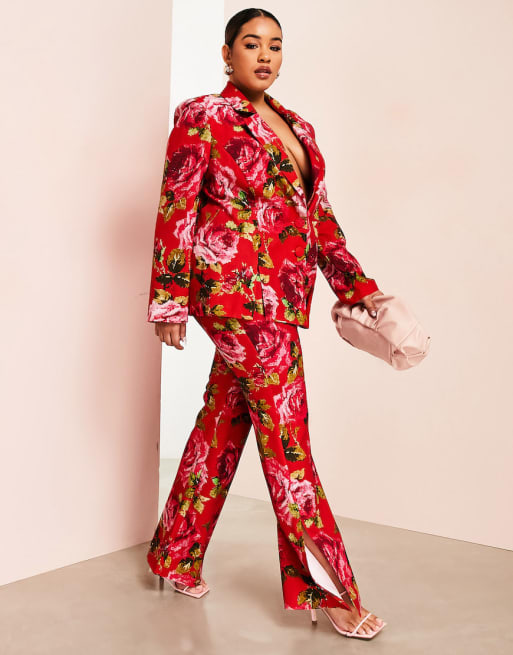 ASOS LUXE Curve – Pixlat rosenmönstrad kostym