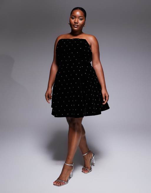 ASOS LUXE Curve – Svart, quiltad miniklänning i sammet med strassdetaljer