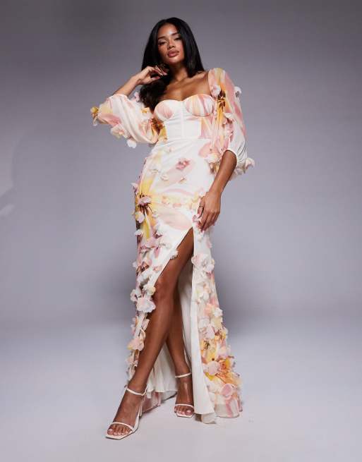 ASOS LUXE – Maxiklänning med 3D-blommor