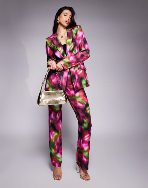 ASOS LUXE – Mörkt, figursytt set med kavaj och byxor med suddigt blommönster