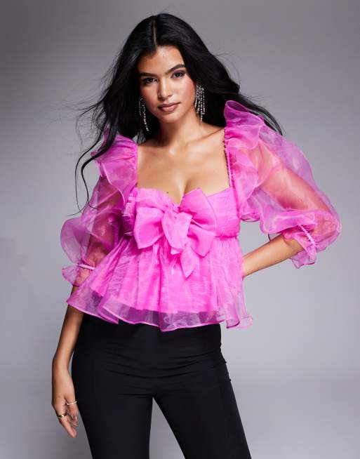 ASOS LUXE – Rosa babydoll-topp i organza med rosett