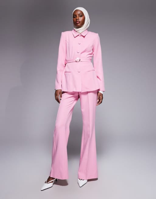 ASOS LUXE – Rosa set med raka byxor med skärp och kavaj med knäppning och krage