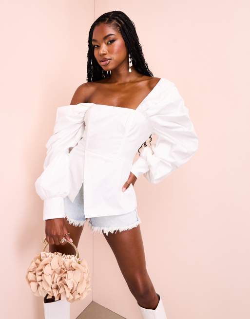 ASOS LUXE – Vit topp i bomullspoplin med stora ärmar