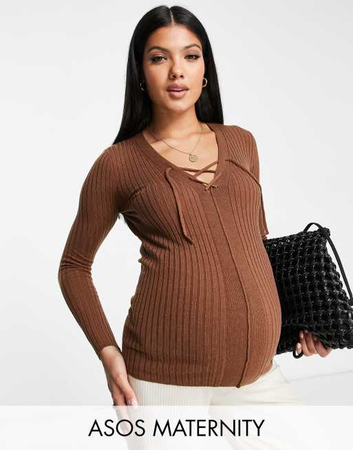 ASOS DESIGN Maternity – Brun tröja med snörning
