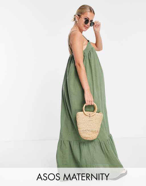 ASOS DESIGN Maternity – Khakigrön, panelsydd maxiklänning