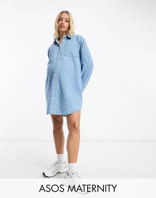 ASOS DESIGN Maternity – Ljusblå skjortklänning i oversize