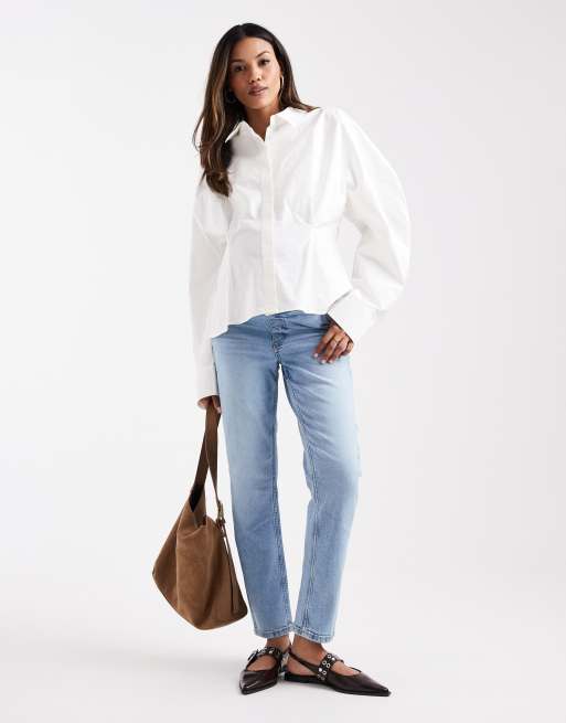 ASOS DESIGN Maternity – Mellanblå, bekväma mom jeans med smal passform