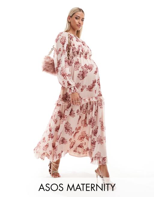ASOS DESIGN Maternity – Rosa blommig maxiklänning med volang och panelsydd nederkant