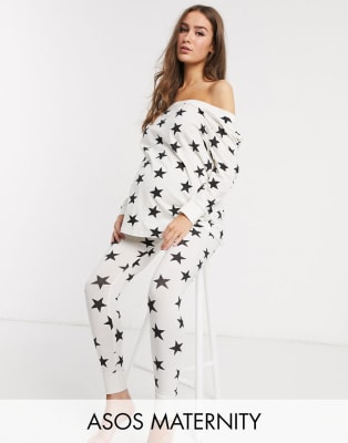 ASOS DESIGN Maternity – Stjärnmönstrad långärmad mys-t-shirt i off shoulder-modell och leggings
